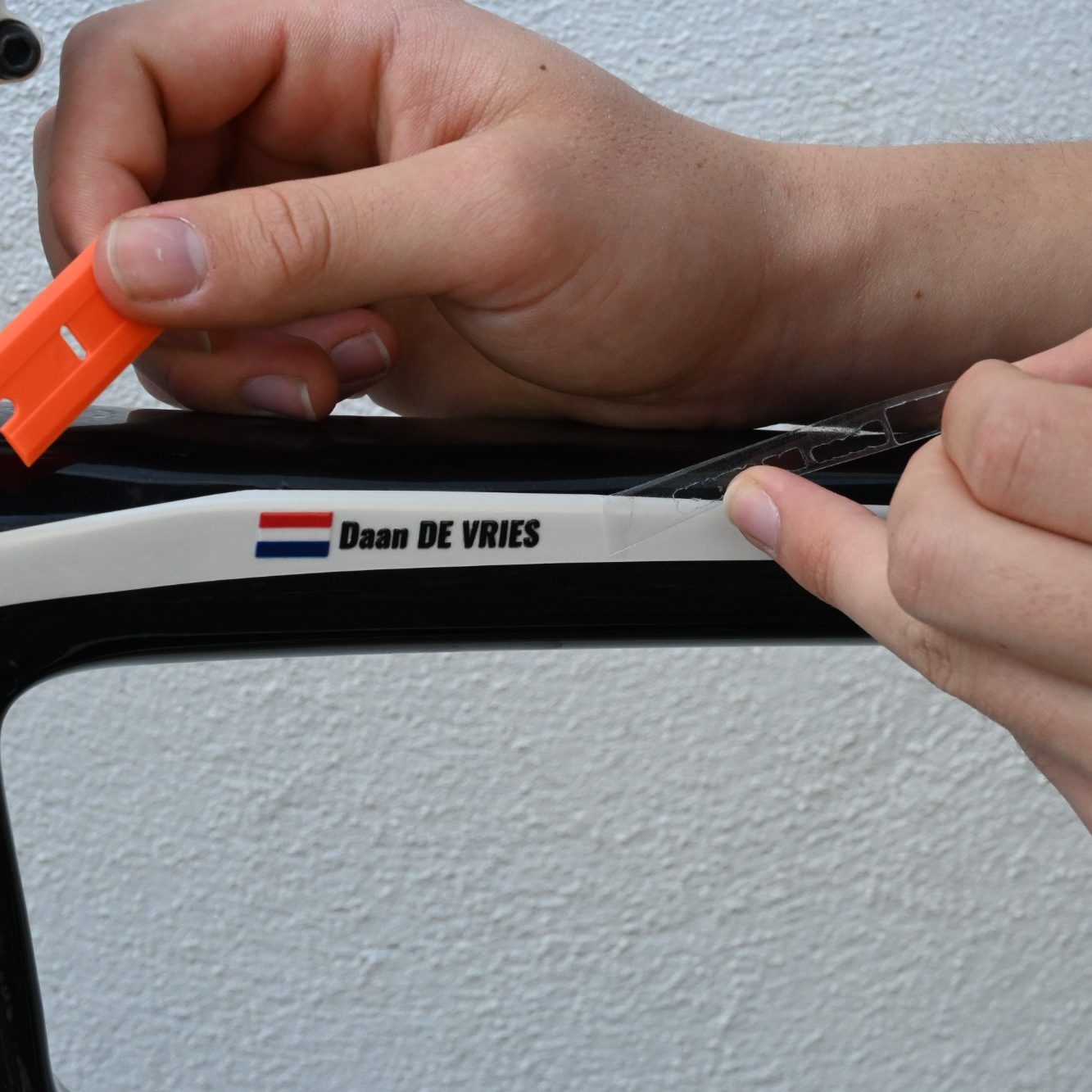 Each set includes: 6 Frametag white letter transfers (ideal for dark backgrounds) 6 Frametag black letter transfers (suitable for both light and dark backgrounds) 2 Alcohol wipes 1 removal toolpresentation box perfect for a gift!Built to withstand the elements, these durable 3D transfers provide a professional, sleek look while being protected from UV damage. Unlike ordinary stickers, Frametags feature individually cut letters with a subtle 3D effect that looks stunning on any bike or gear.Perfect as a gift or for riders who want their gear to look as sharp as their performance.